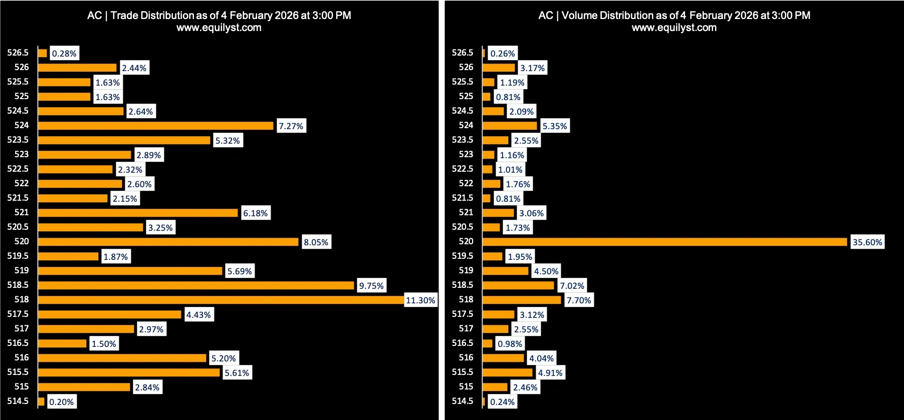 Dominant Range: ₱518.00 – ₱520.00