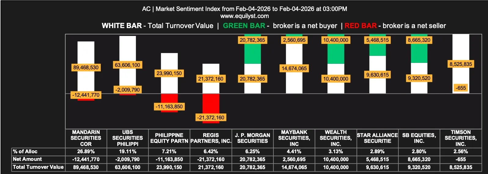 For investors who monitor broker flows, activity from Mandarin Securities, UBS Securities, and CLSA Philippines deserves attention, as these firms rank among the most active traders of AC on a year-to-date basis.