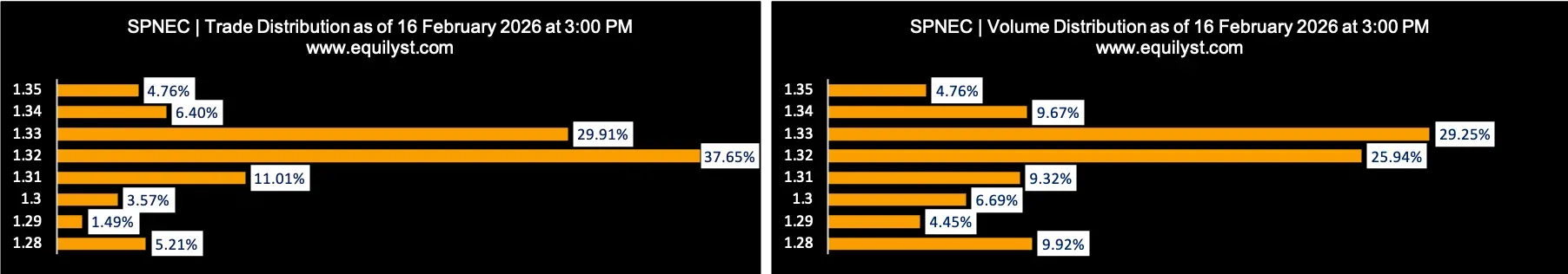 Additionally, the closing price sits above the VWAP of ₱1.3187, suggesting that buyers were willing to transact at progressively higher prices throughout the session. This pattern reflects sustained intraday demand rather than a late-session spike.
