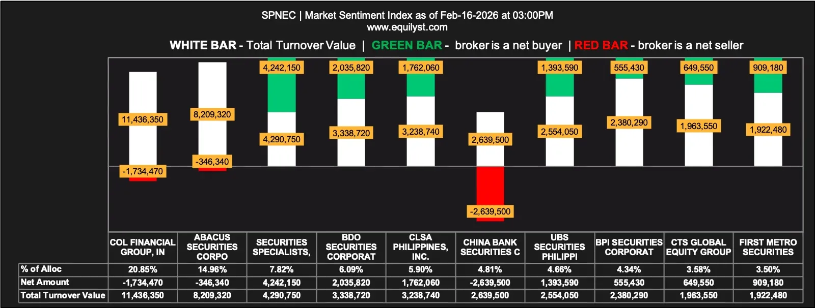 SP New Energy Corporation (SPNEC) closed on February 16, 2026 at ₱1.33 per share, up 4.72%, supported by a modest Net Foreign Buying of nearly ₱3 million. The positive price action, coupled with foreign participation, signals renewed buying interest in the short term.